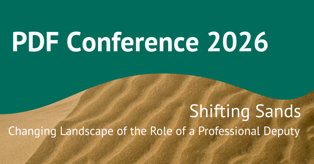 Whilst providing a collective voice to act as a conduit between its members and key stakeholders such as the Office of the Public Guardian, the Ministry of Justice, the Court of Protection and the Law Society, The PDF is importantly a community for professional deputies and those that work alongside them in the Court of Protection